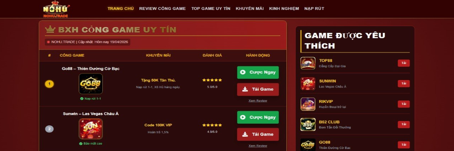 Nohu.trade cập nhật Link tải game Nổ Hũ uy tín 2026. Review top cổng game xanh chín, tặng Code tân thủ khởi nghiệp. Nạp rút 1:1 qua Bank/Momo siêu tốc.
